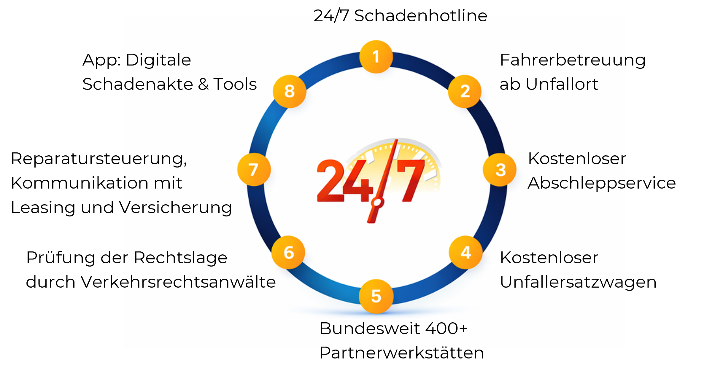 Bereitstellung eines kostenlosen Unfallersatzwagens bei Bedarf.